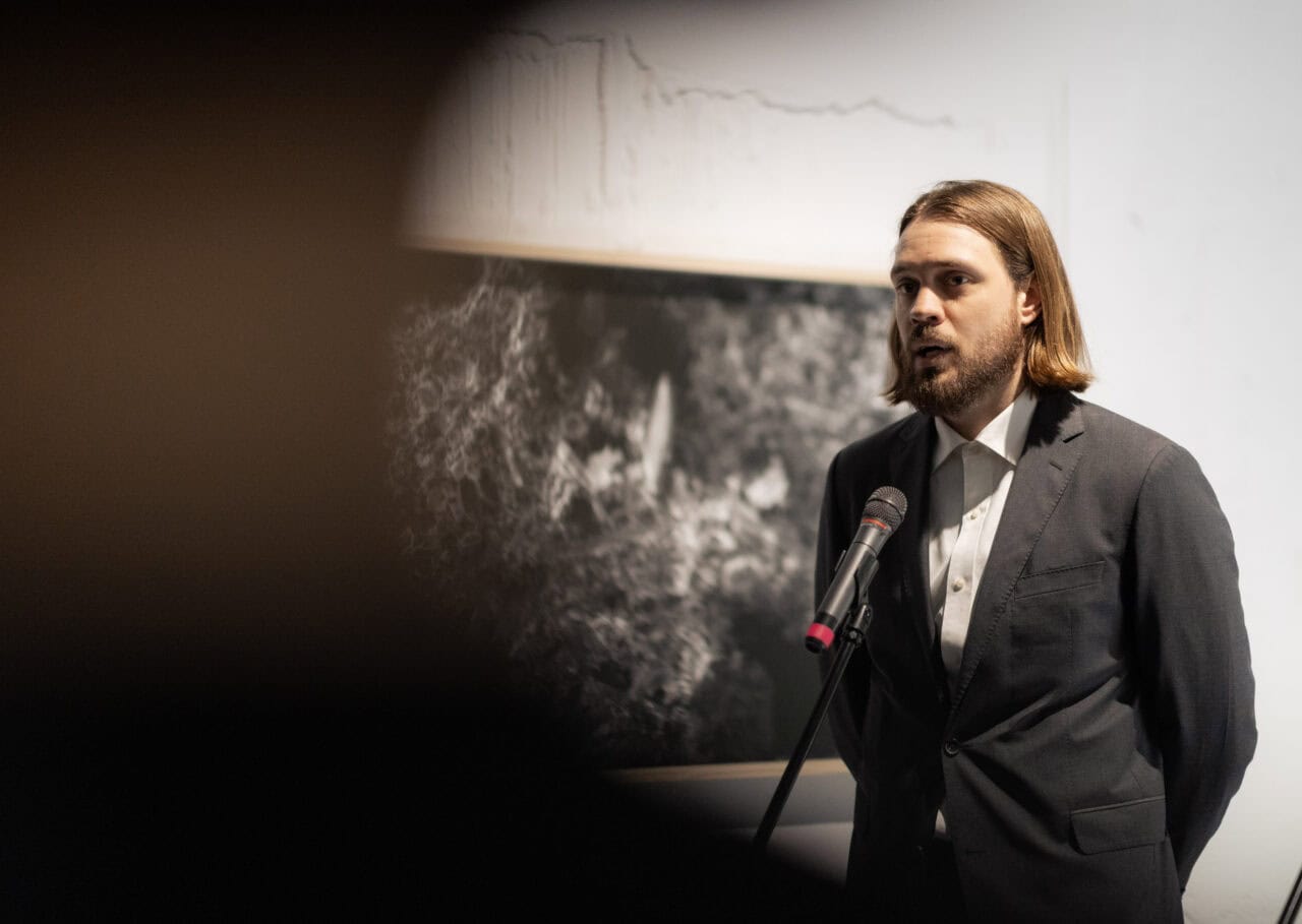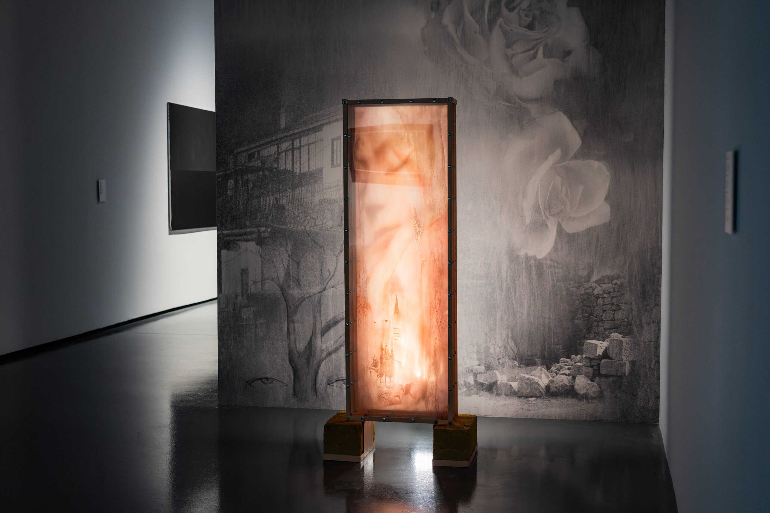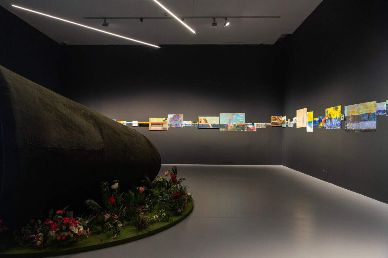 Юрій Єфанов, Я дивився на синусоїдний рух блакитних електронних хвиль допоки не відчув їх запах, 2025, фото з виставки номінантів Премії PinchukArtCentre 2025
