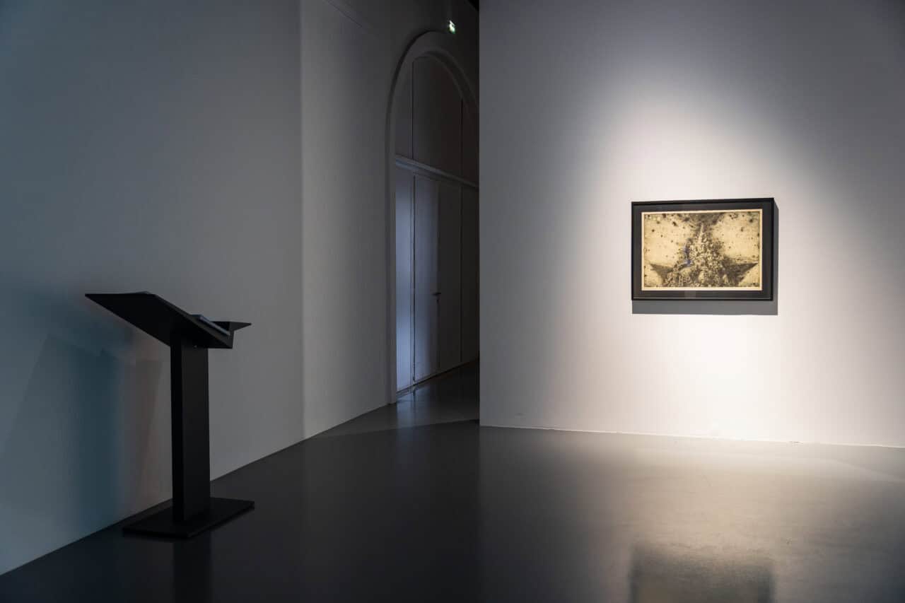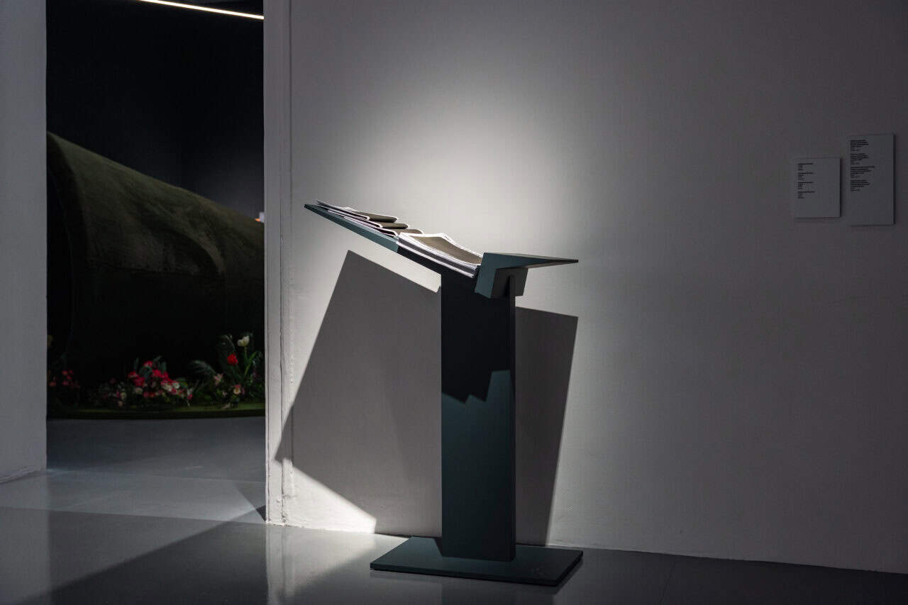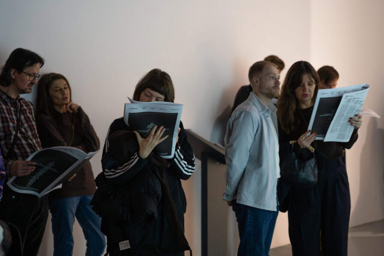Юрій Єфанов, Я дивився на синусоїдний рух блакитних електронних хвиль допоки не відчув їх запах, 2025, фото з виставки номінантів Премії PinchukArtCentre 2025
